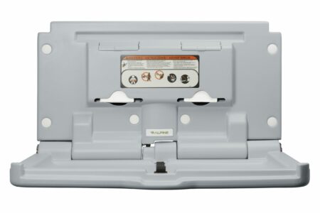 Meet customer, staff and visitor amenities expectations by installing the sleek, modern, easily cleaned, Alpine Industries Horizontal Baby Changing Station in your commercial establishment, office or professional institution’s restrooms. The concave resting surface, along with the secure safety belt, comfortably hold your little one securely in place during use. Added child protection afforded by using table liners easily accessed from two 50-liner dispensers, antimicrobial coating on changing table surface, and Braille/English warning label to never leave child unattended. Tested to support up to 220lbs when properly installed.